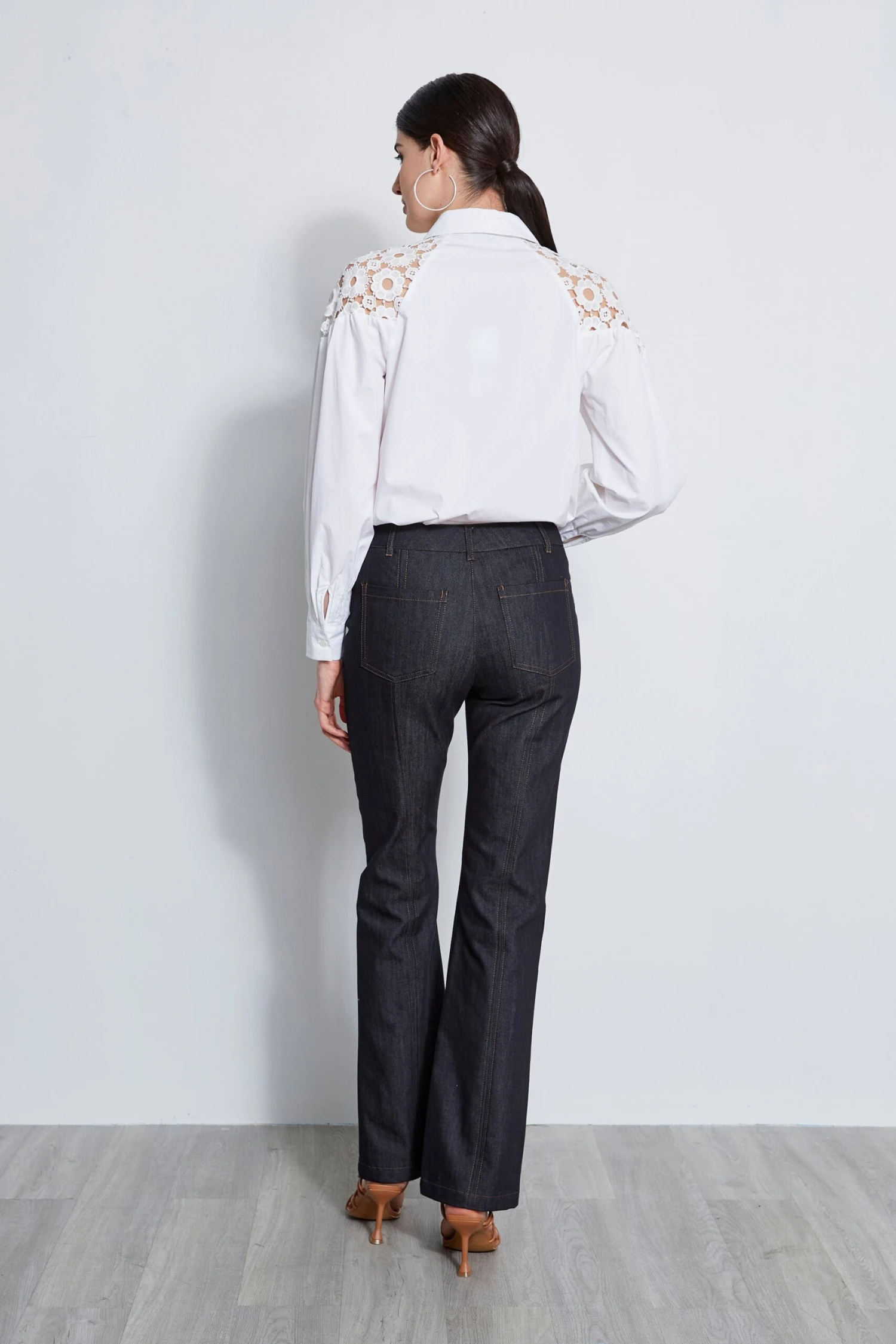 This is a new take on the white shirt. Designed with femininity in mind, with insets of floral lace on romantic sleeves with pin tucked cuffs, this shirt deserves a place in your wardrobe.
