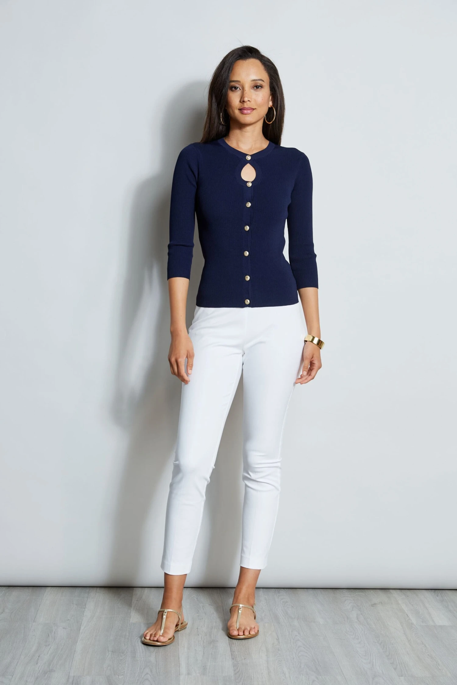 Designed to be your next go-to cardigan. It’s all about the bold gold buttons that detail our Keyhole Cardigan Sweater. Perfect for wearing on its own with White Denim or over a tank, this knit will become your go-to piece