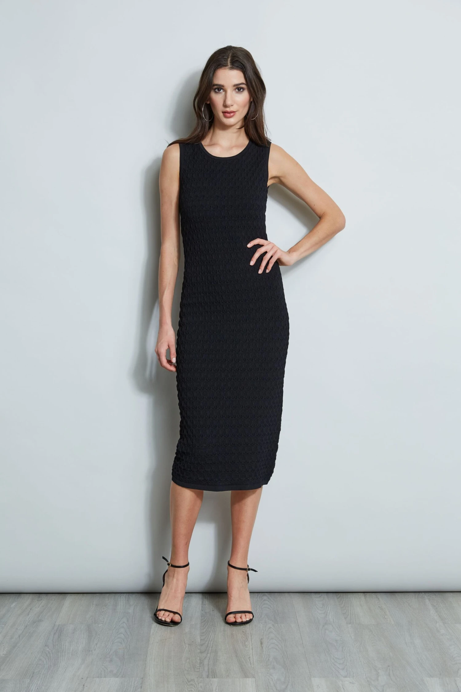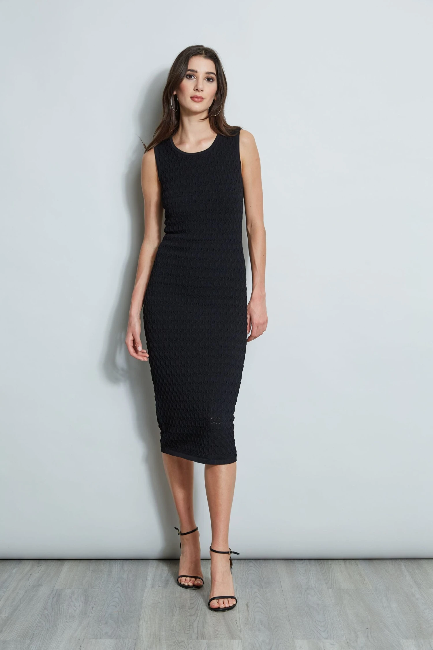 A Crochet Knit Dress with a designer vibe. Our sleeveless midi dress is the definition of modern cool. Done in a crochet knit stitch, our bodycon sweater dress proves that sophistication and comfort can co-exist.