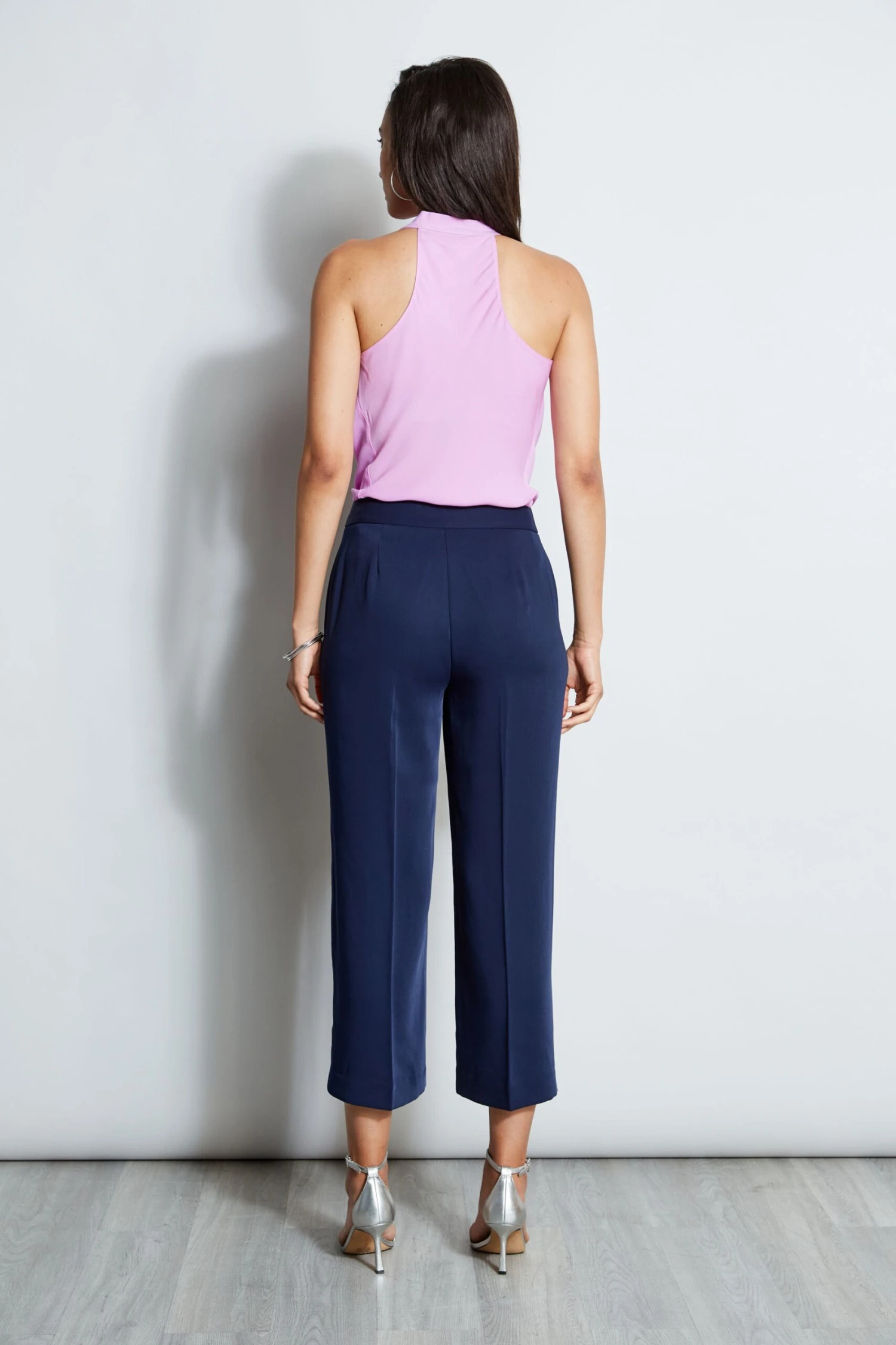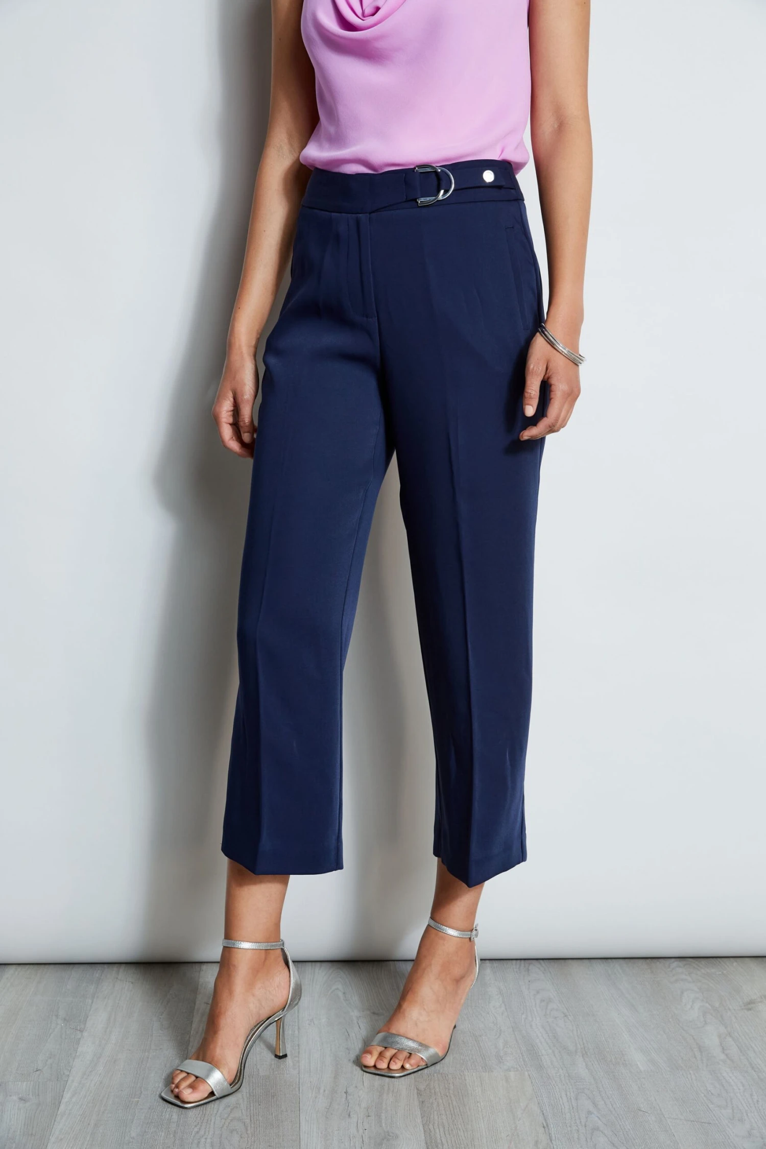 - Matte Crepe Wide Leg Pant with D-Ring Belt Detail