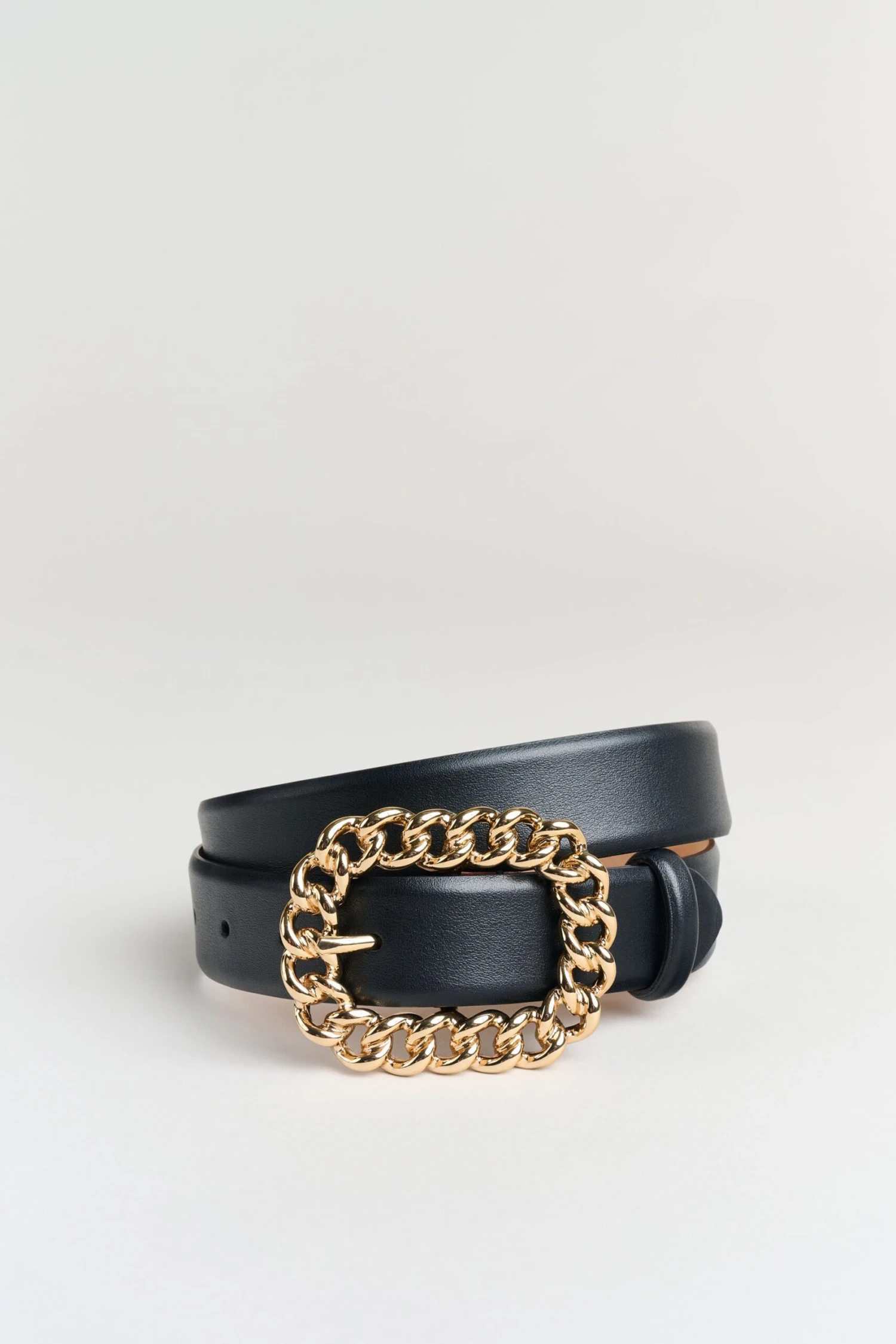 Meet Elie’s “IT” Fall accessory – the Chain Buckle Belt. Handcrafted in Italy Nappa Leather, the unique link chain buckle adds an effortless glam twist worn with Jeans or Dress Pants.