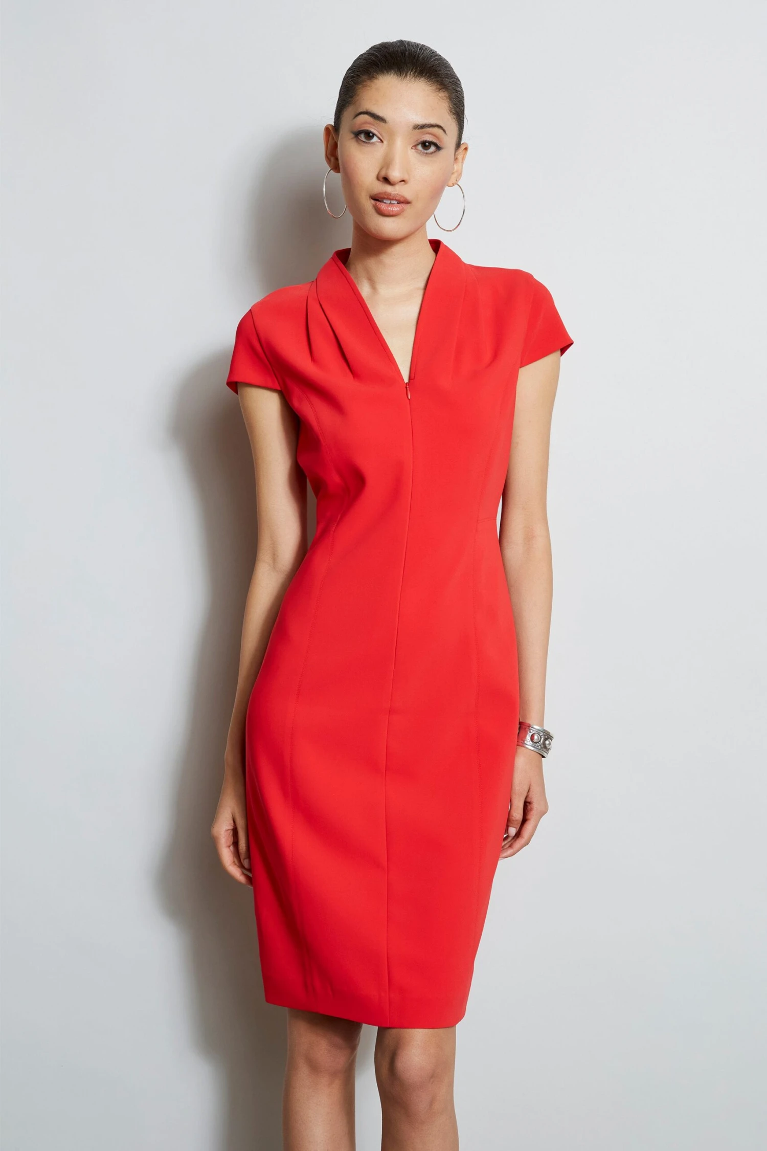 - Fitted Lightweight Crepe Short Sleeve Dress with pleats at the shoulder