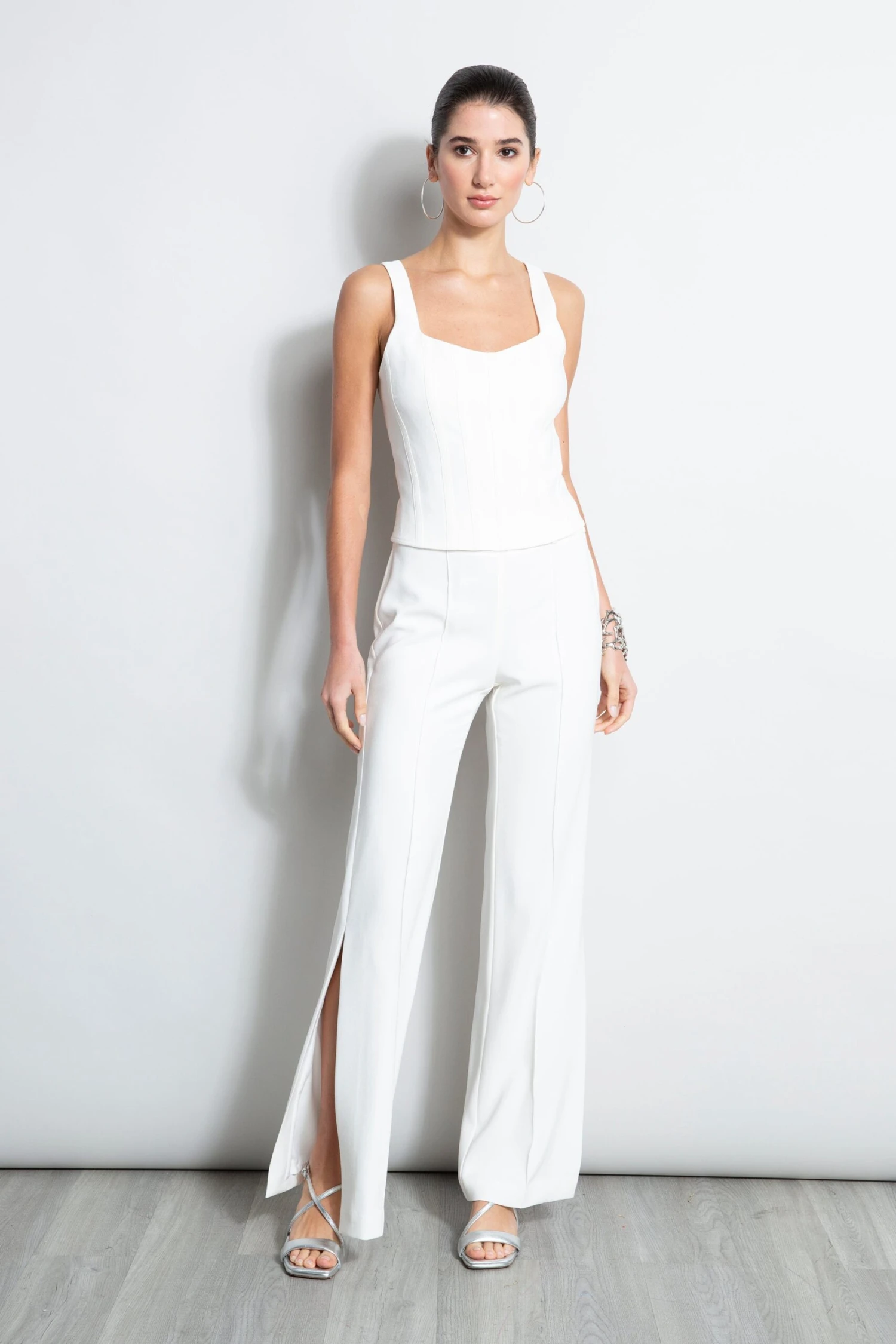 Meet the season’s must have corset. Elie designed it in his signature Fluid Crepe with a modern contour neckline & seams. It’s for layering under your favorite blazer or wearing on its own with our overlay pants. Wear it over your pants or tuck it in.