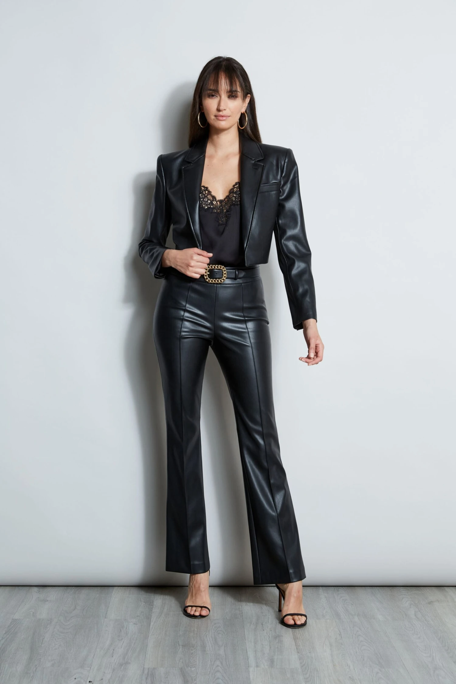 Meet the next “it” blazer. Cropped, bold shouldered, with stacked buttons sleeve detail, it has the ultimate cool factor! Designed in our Luxe Vegan Leather, Elie loves it paired as a suit with its matching vegan leather pant or skirt or as a great item jacket throughout your wardrobe.