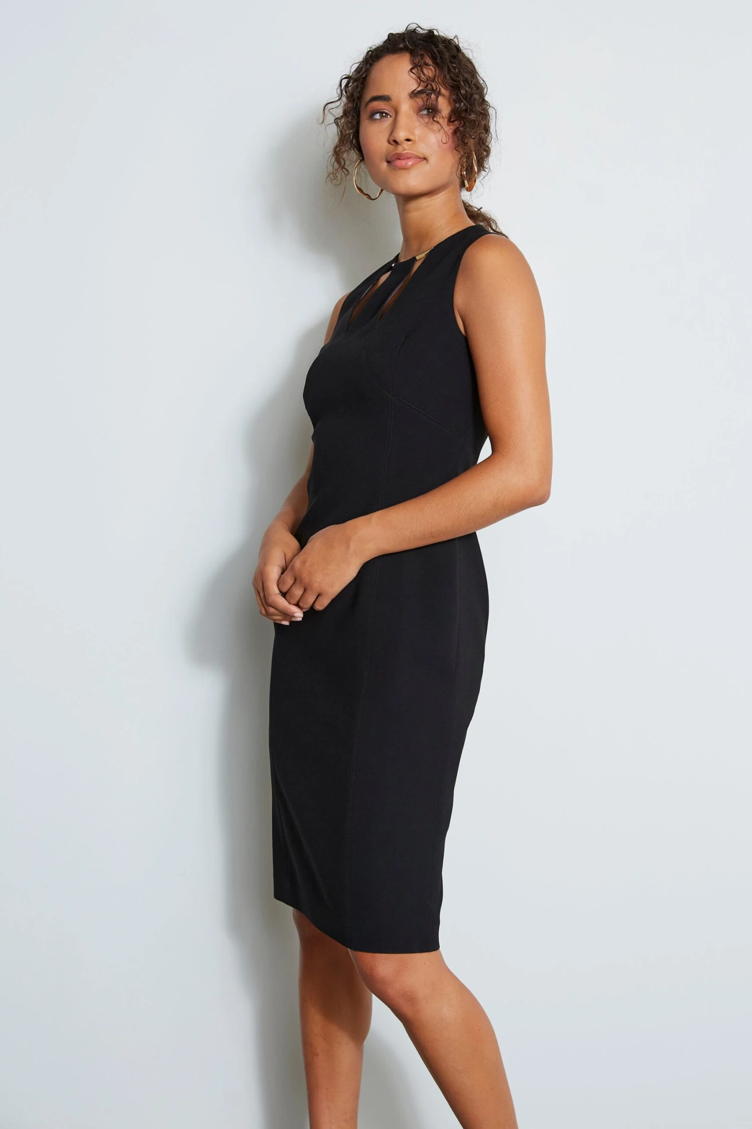 - Fluid Crepe Sheath Dress with Cut Out Detail