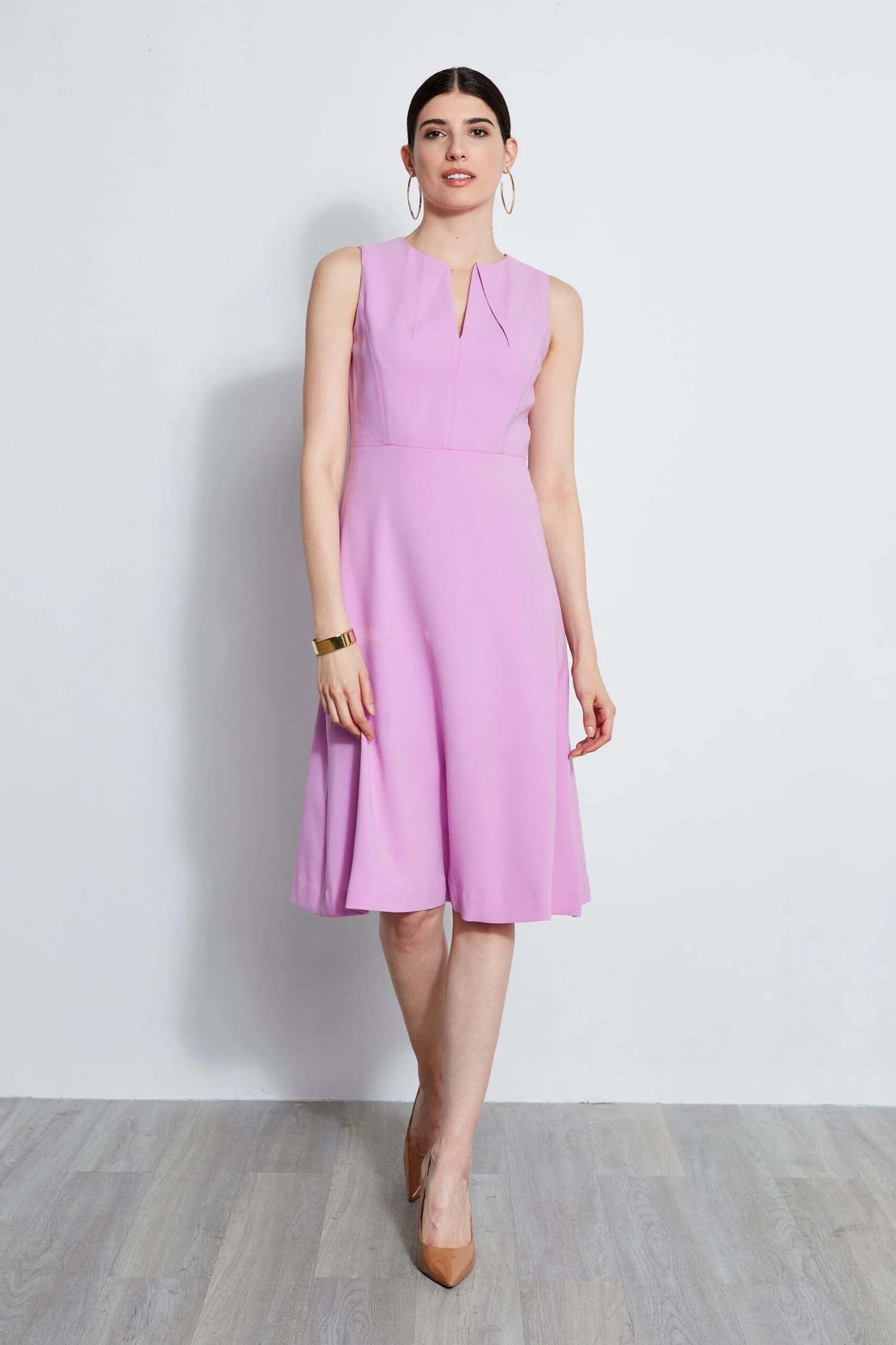 - Fluid Crepe Sleeveless Midi Dress with Darted Neckline