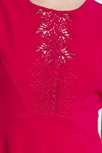 - Light-Weight Crepe Sleeveless Midi Dress with Lace Insert