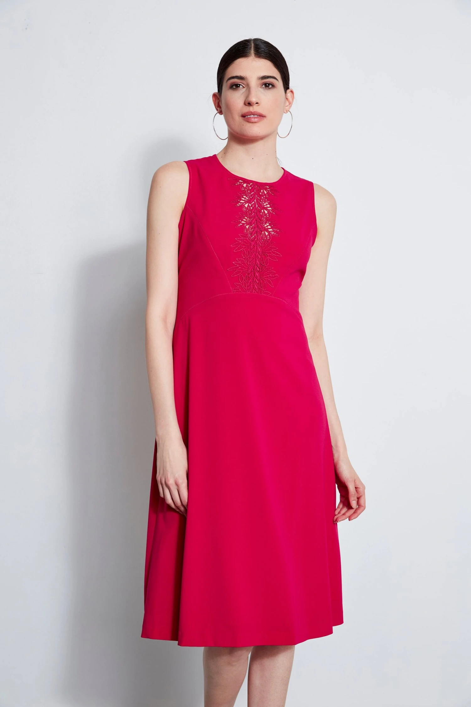 A romantic Lace applique adds a feminine twist to our Sleeveless Midi Dress. With bodice & empire seams detailed with zig-zag embroidery stitching, this dress will flatter every woman who slips into it. In Lightweight Crepe, it’s perfect for day to dinner dressed up with a sexy sandal.