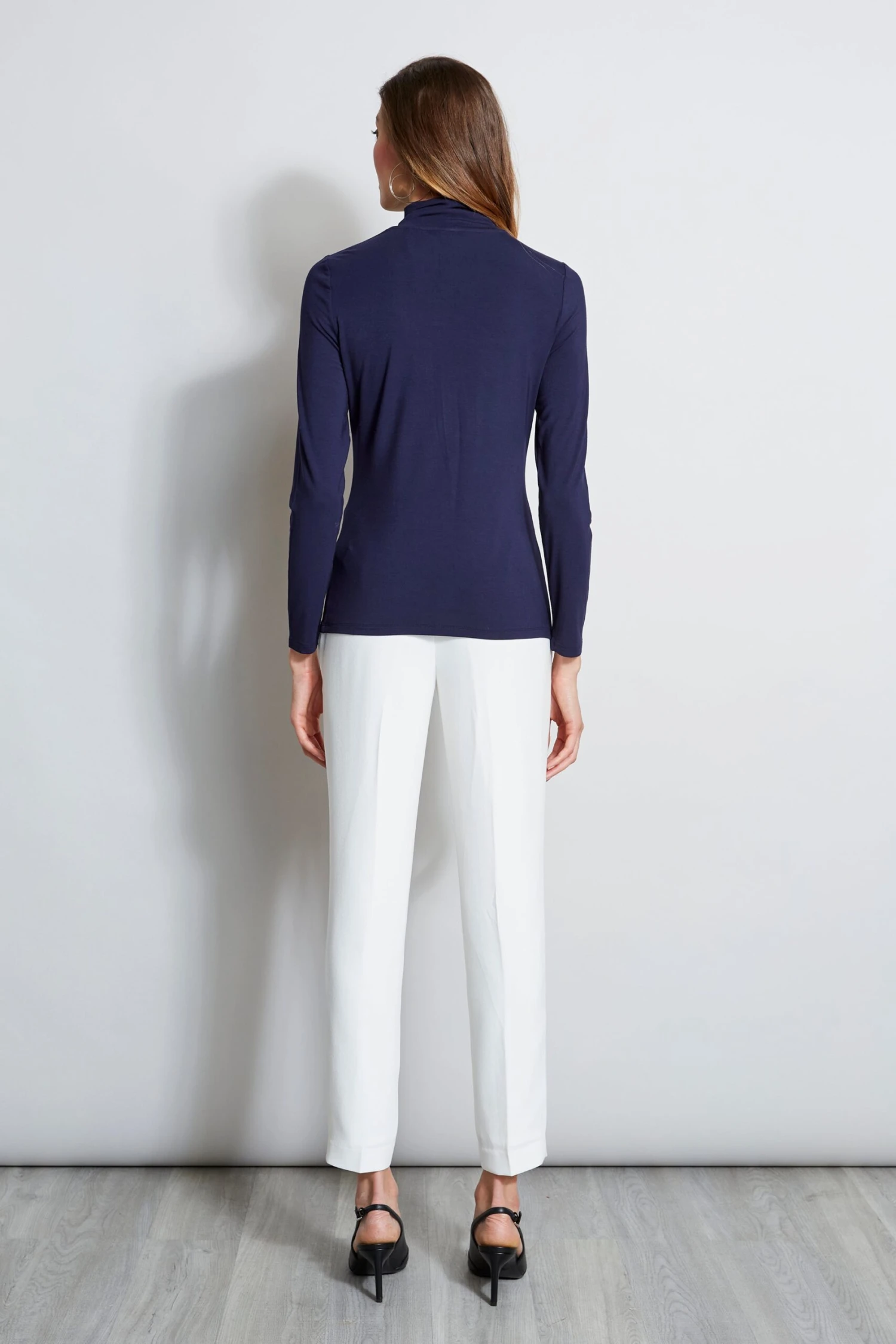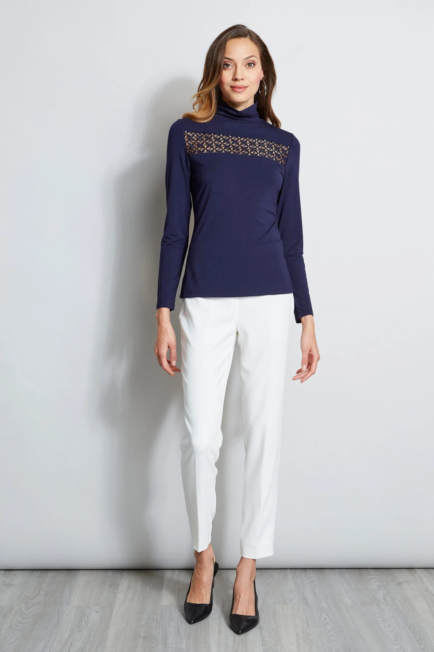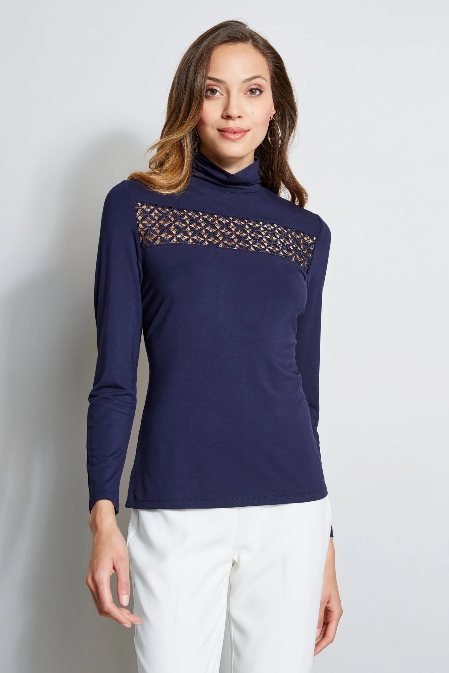 - Luxe Long Sleeve Modal Jersey Turtleneck T-shirt with Geometric Lace Panel