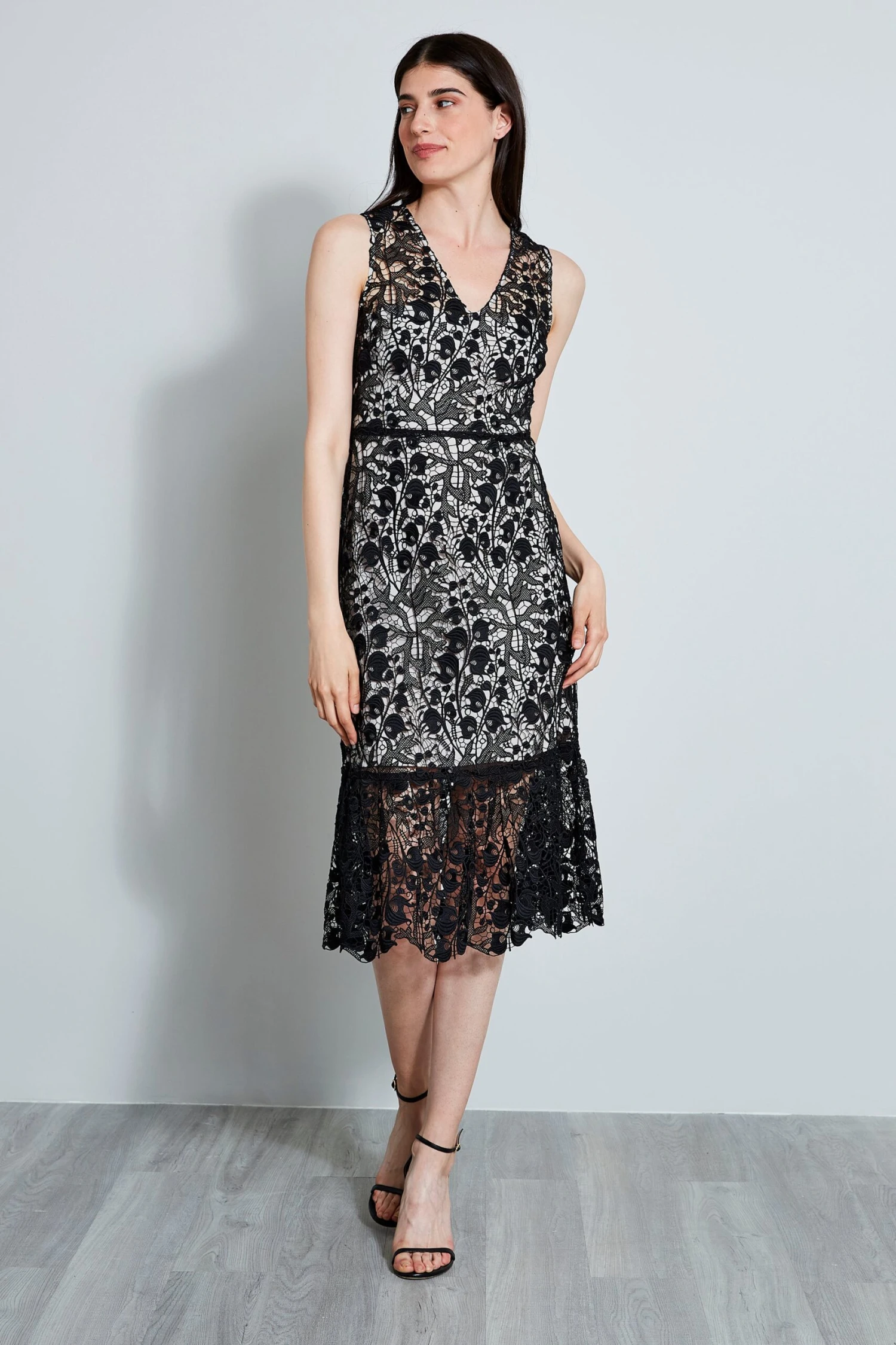 - Sleeveless Lace V-Neck Fit & Flare Dress