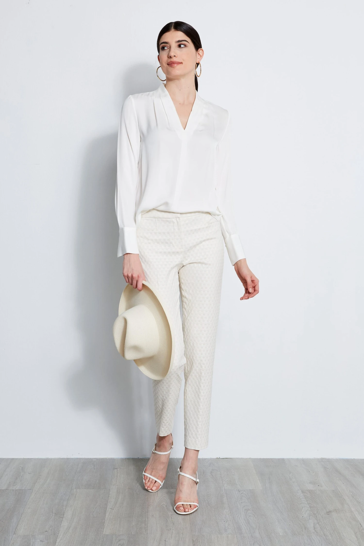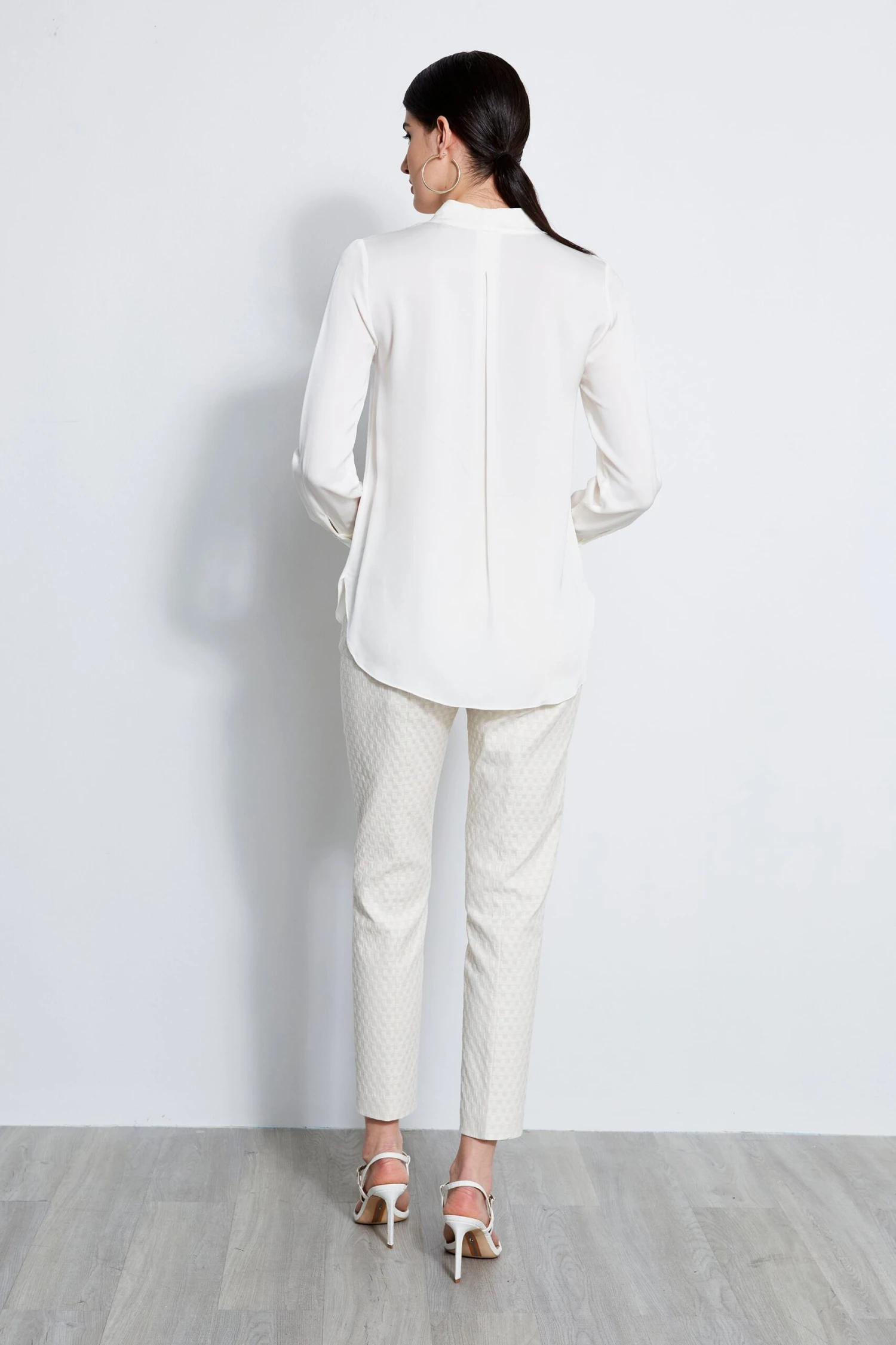 - Silk Georgette Long Sleeve Contour Neck Shirt