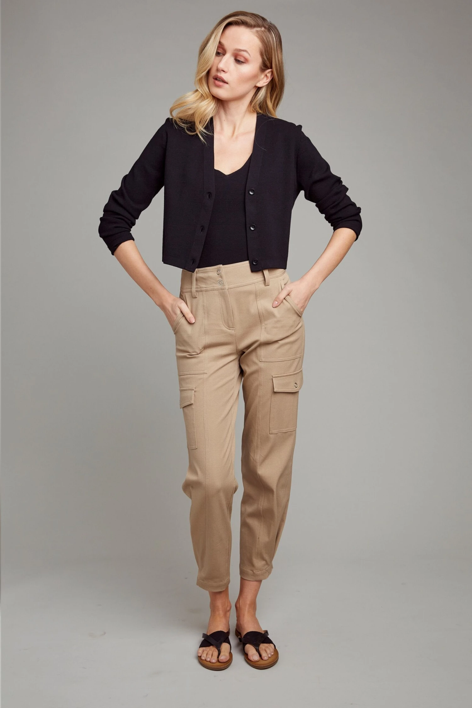 - Cropped 3 Button Cardigan