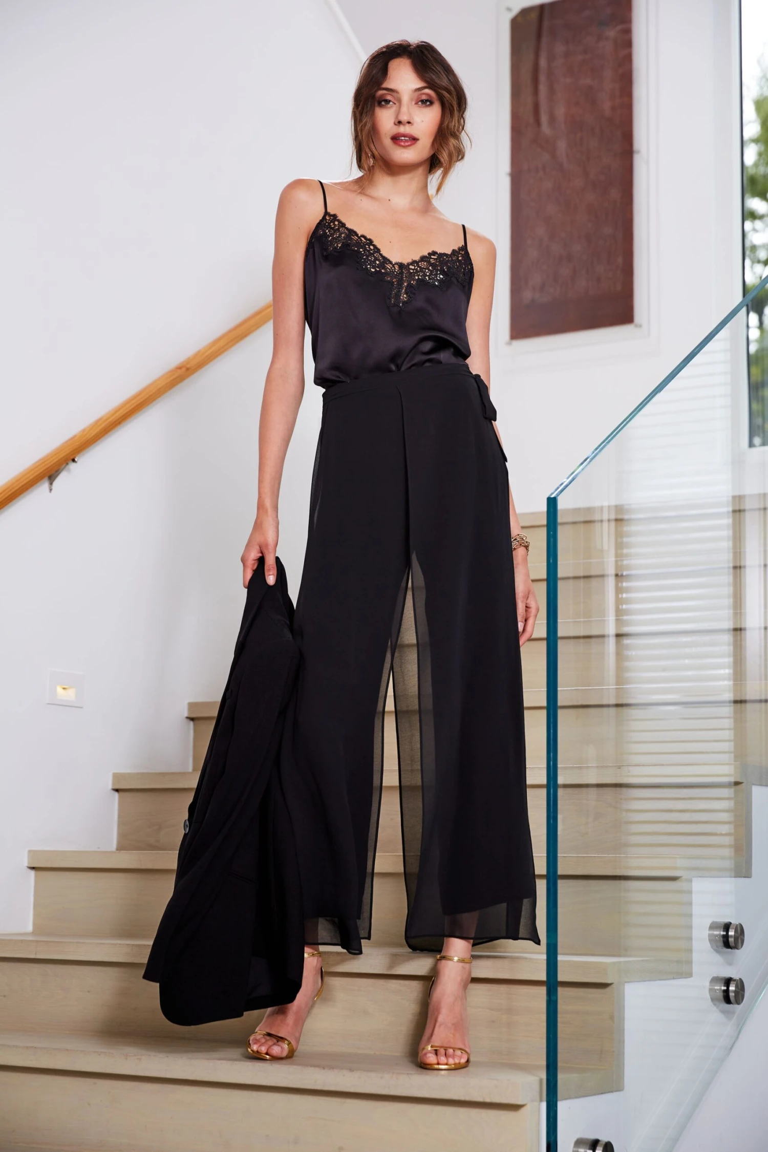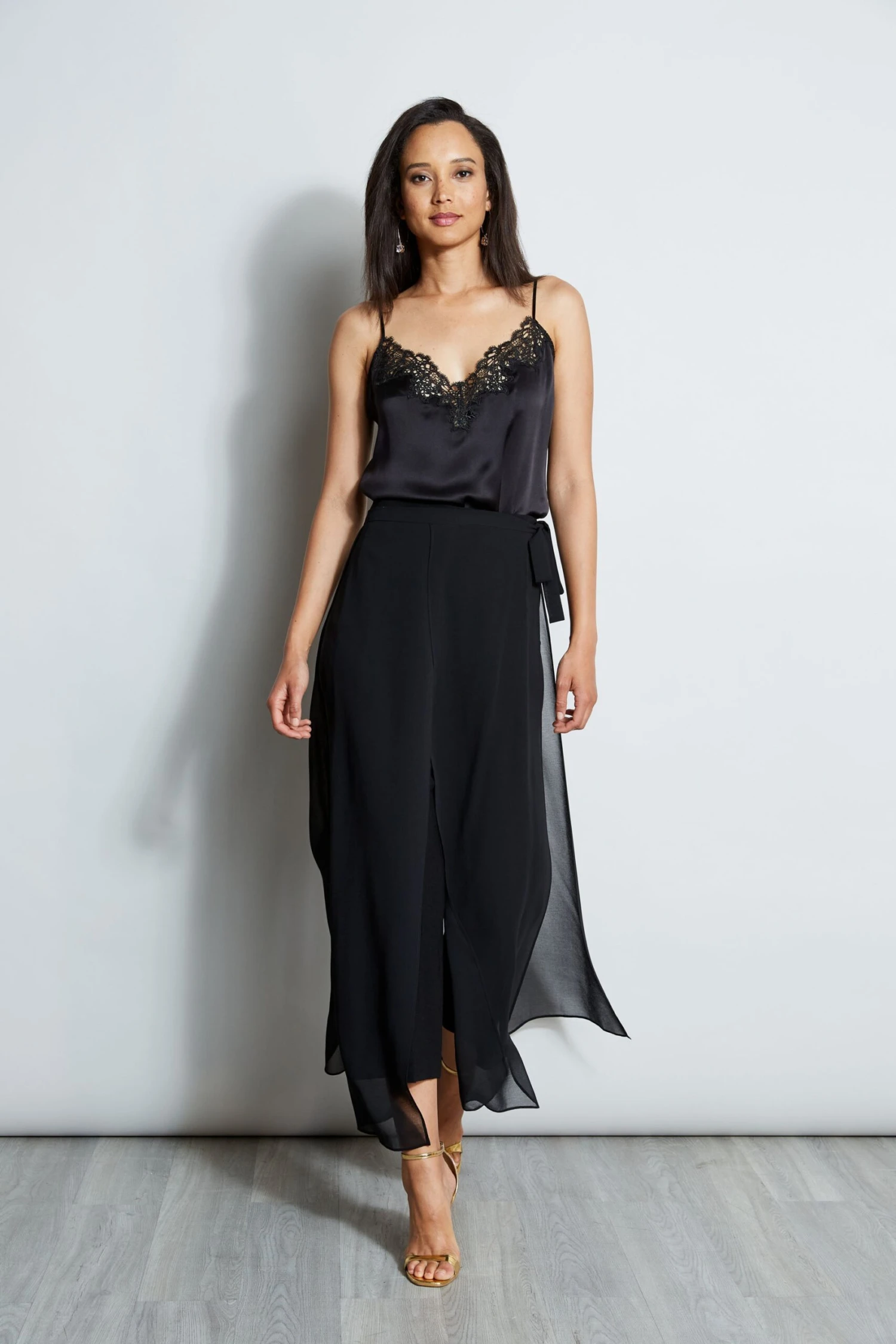 - Wide Leg Side Zip Pant with Removable Chiffon Overlay