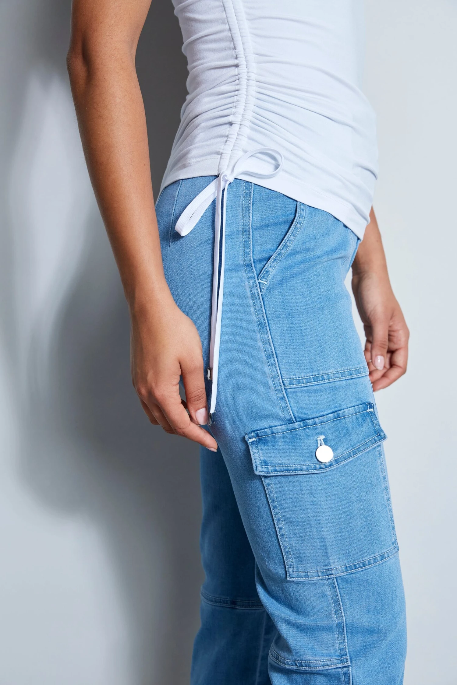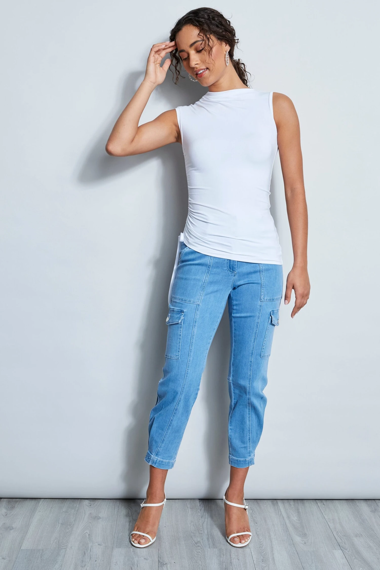 A knit with the cool factor. The modern drawstring side ruching & subtle asymmetric pleat neckline give artistic expression to our Luxe Viscose Stretch Jersey. Dress it down with Jeans or up with Elie’s matching Midi Skirt.