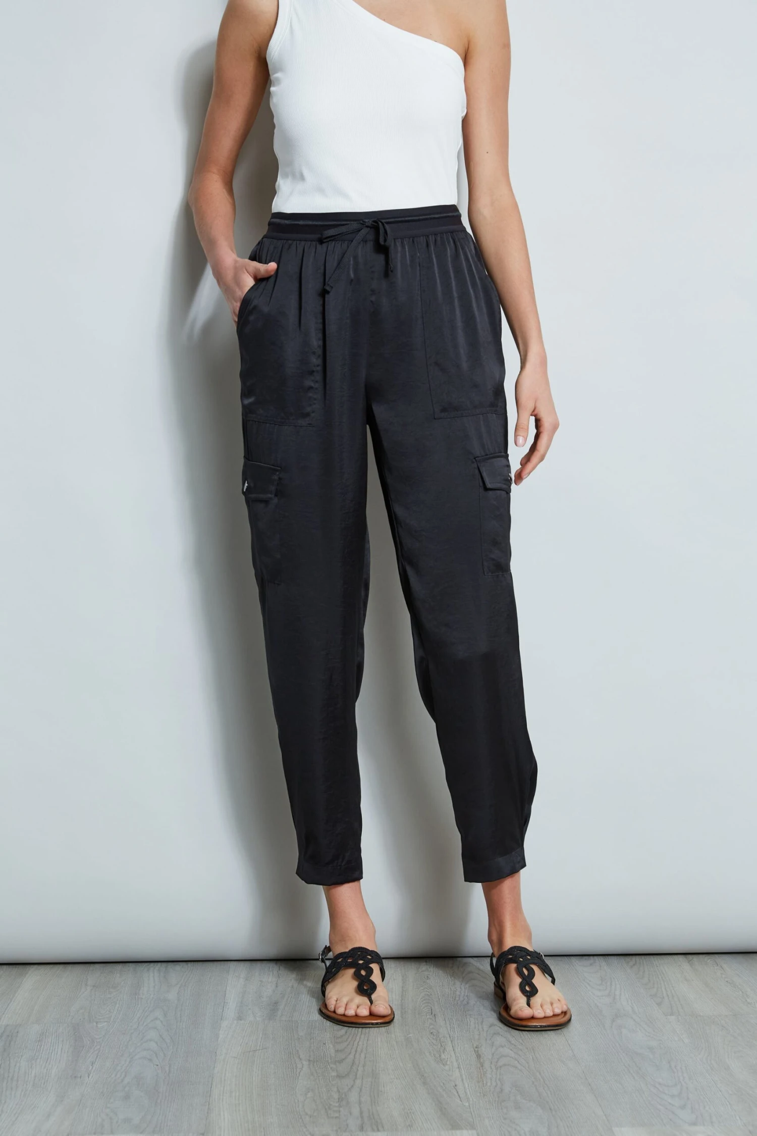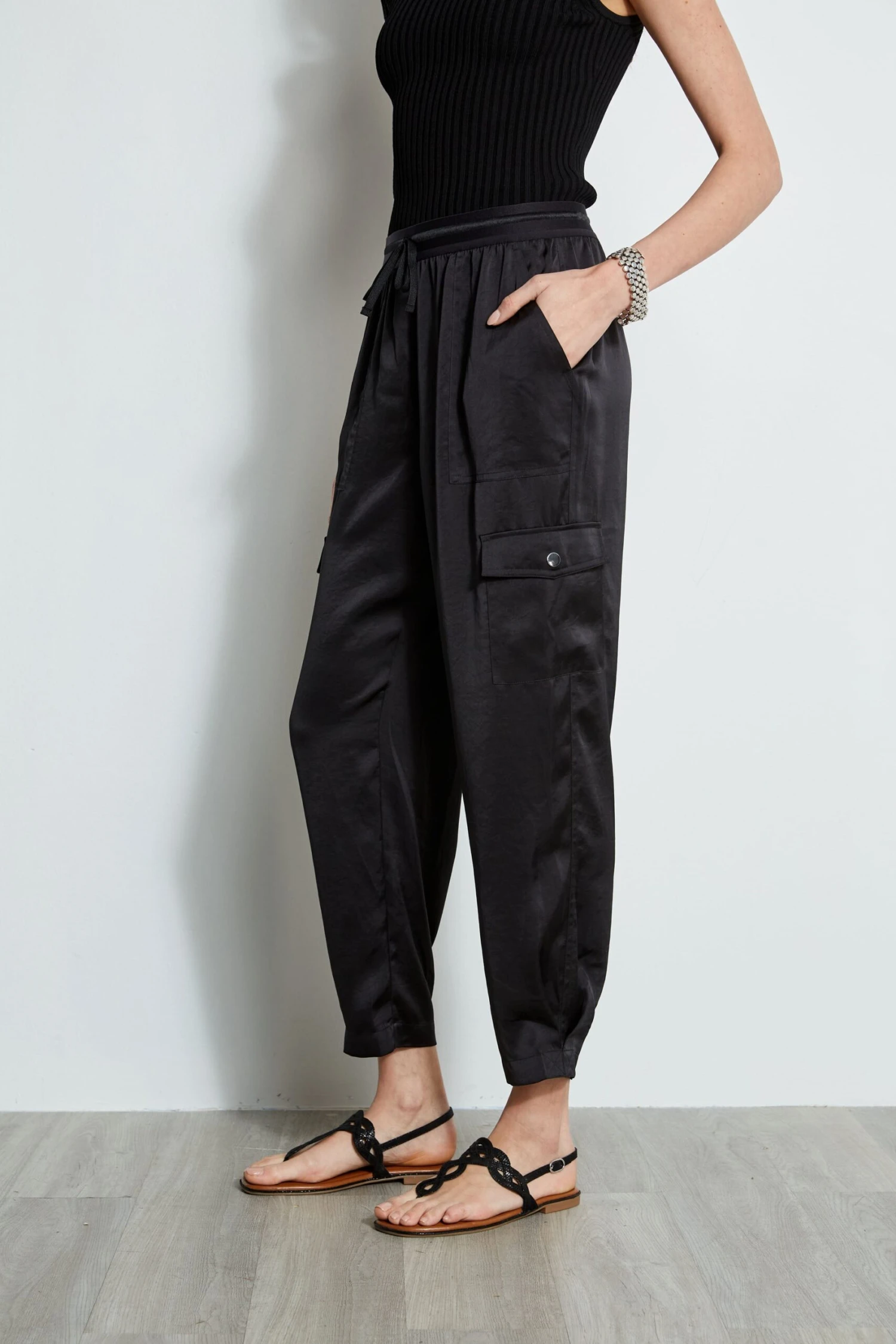 Modern Washed Satin lends a casual chic expression to the season’s must have Cargo Pant. The relaxed fit, drawstring waist & pleat detail hem are the definition of effortless sophistication. You will live in these pants year round.