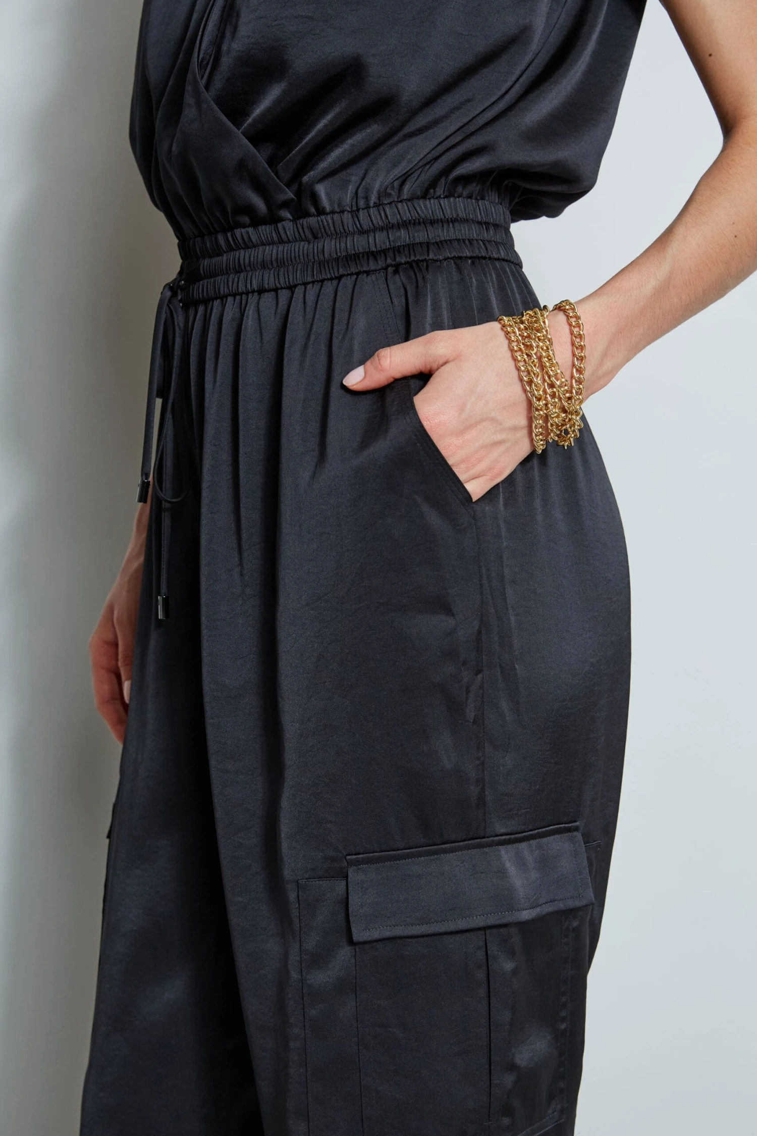 - Washed Satin Cargo Pant Jumpsuit with drawstring waist