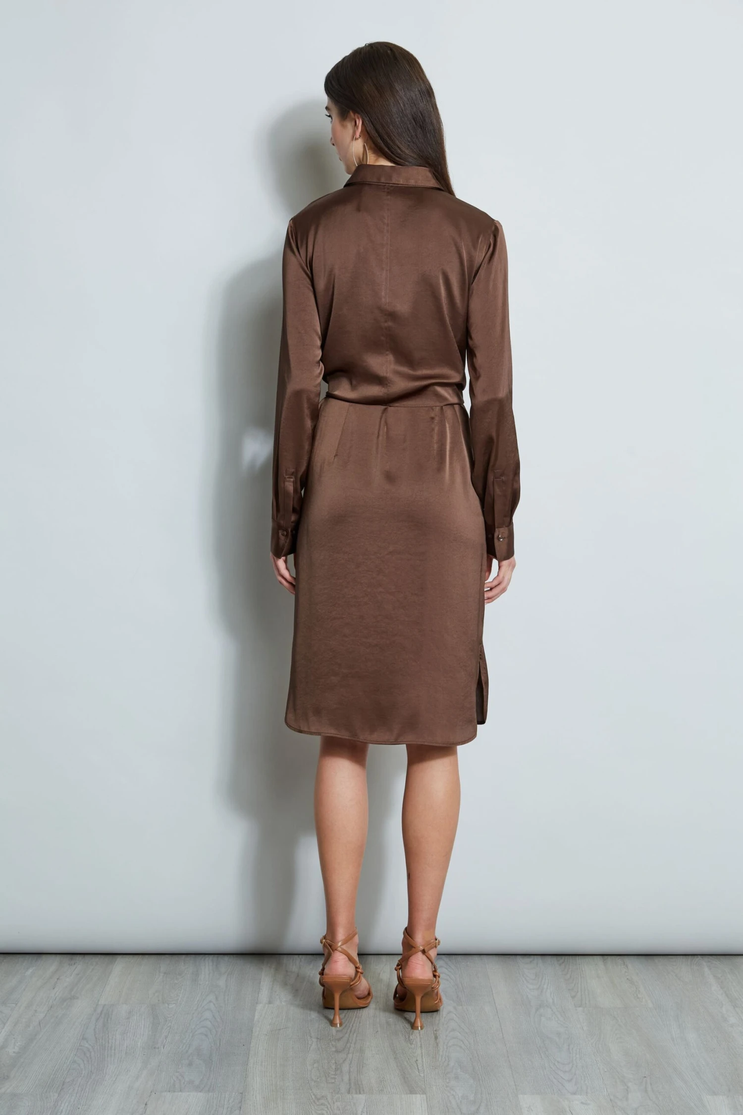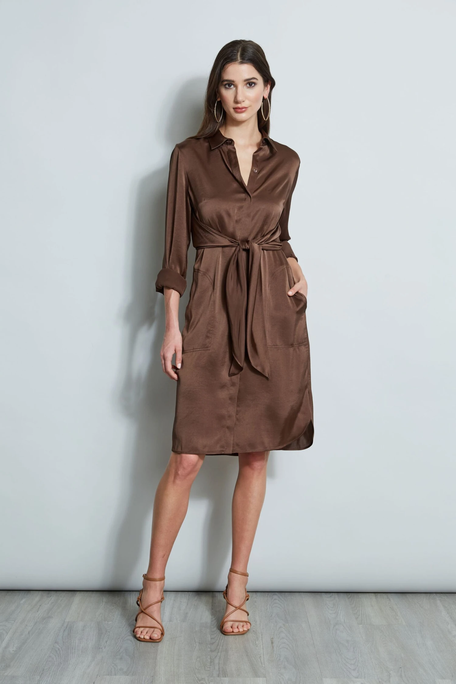 - Washed Satin Shirt Dress with Self Tie
