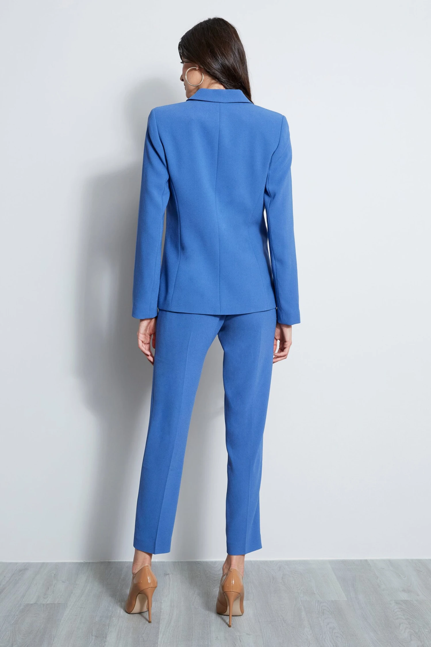 Elie’s signature blazer is meticulously tailored, polished and modern. Single breasted with peaked lapels, the contour lines & panel inserts lend a body skimming silhouette. This blazer has the cool factor you are looking for in your next favorite jacket. Pair it with its matching pant for a sleep monotone column or wear it as a separate.