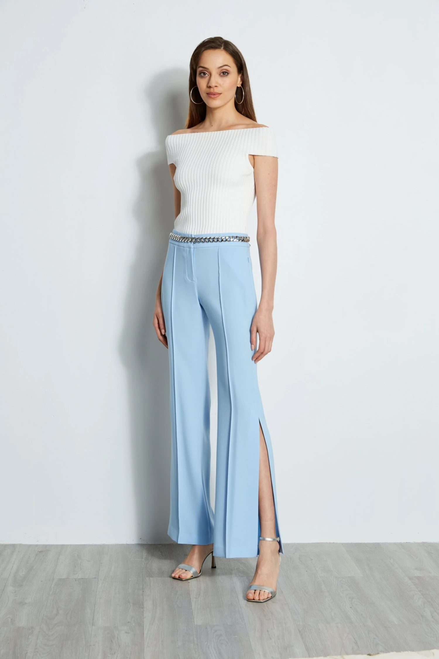Meet the pant of the season! Our wide leg Fluid Crepe Pant features a slightly high-rise waist and graphic side slits – we love these pants with a blazer or our contour sweater.
