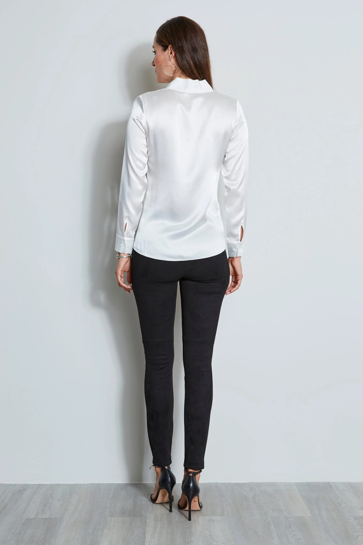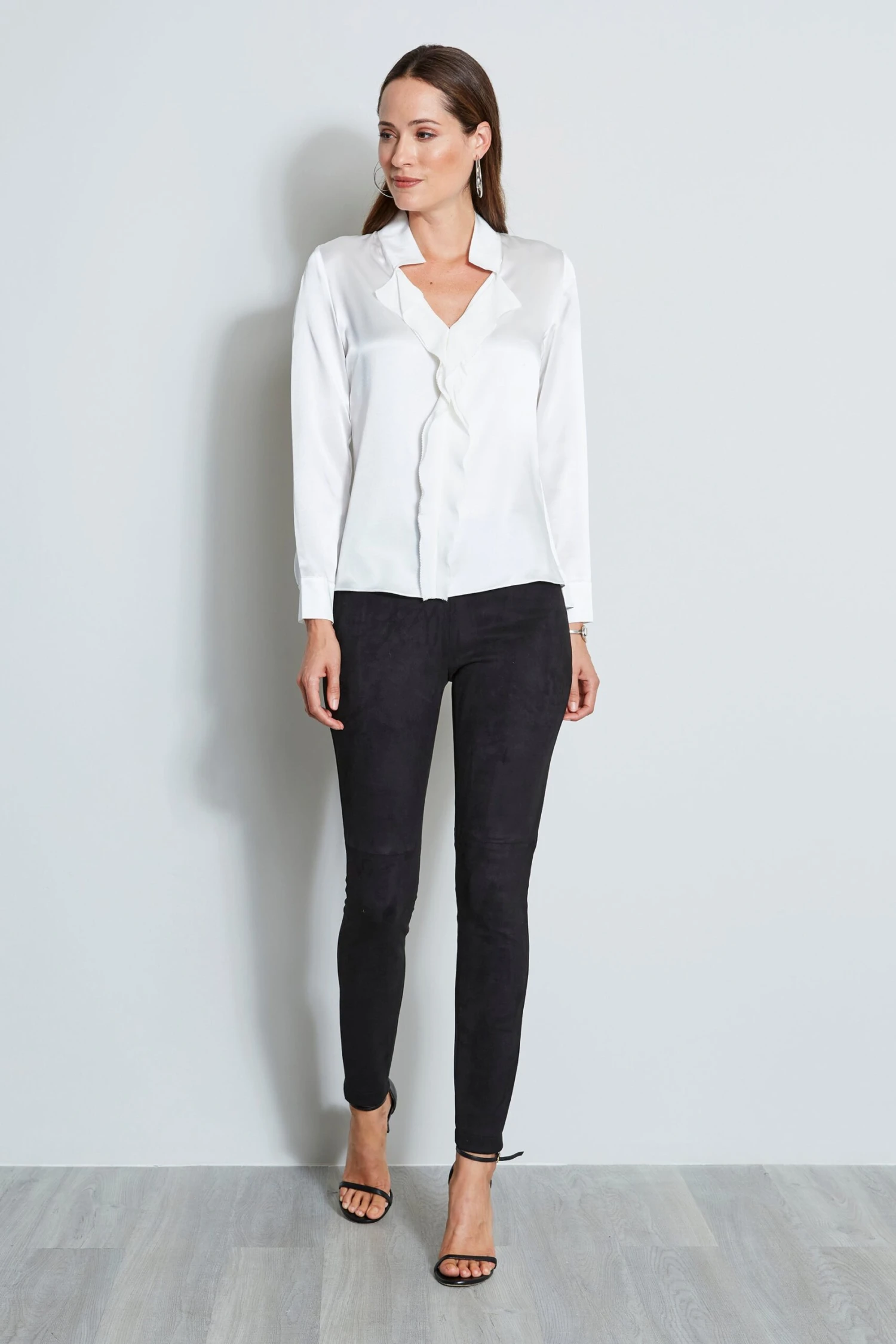 It’s all in the details. Modern with its ribbon stand collar neckline, this long sleeve Silk Georgette shirt features a charming Chiffon cascading ruffle. Dress it up with heels or down with our denim for a fresh take on a must-have.