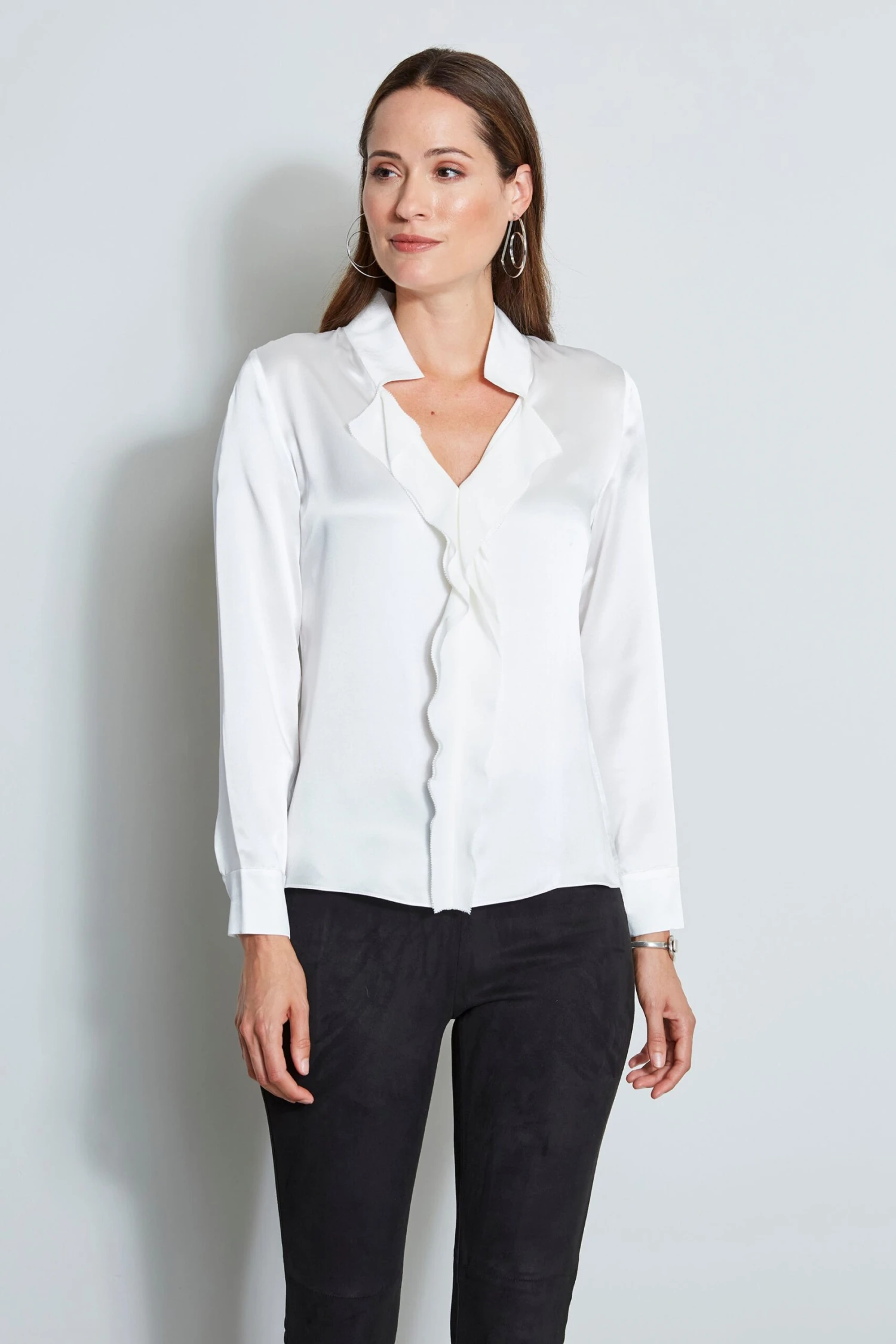 - Long Sleeve Silk Shirt with Cascading Ruffles