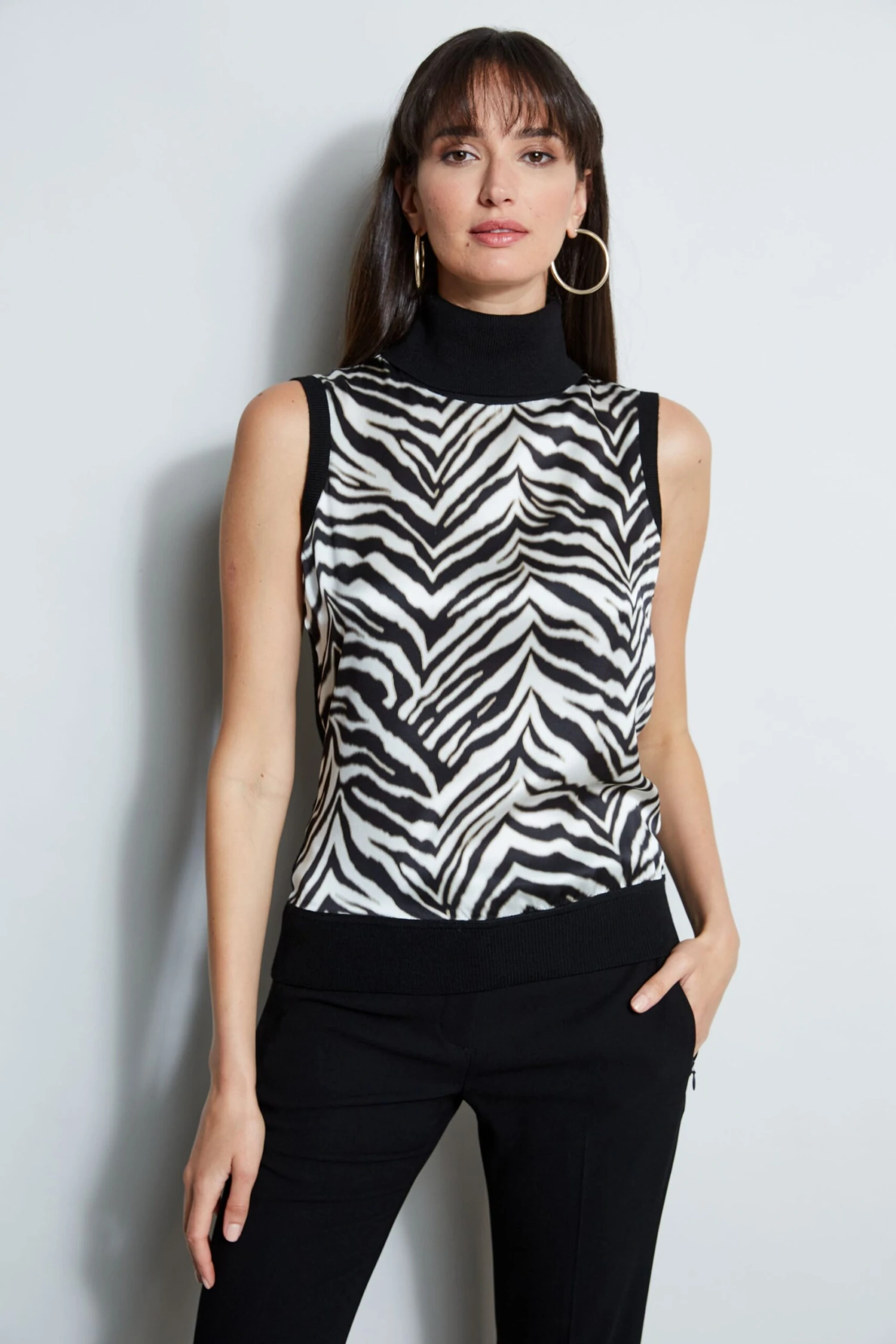 - Sleeveless Silk Satin Zebra Print Sweater with Merino Back