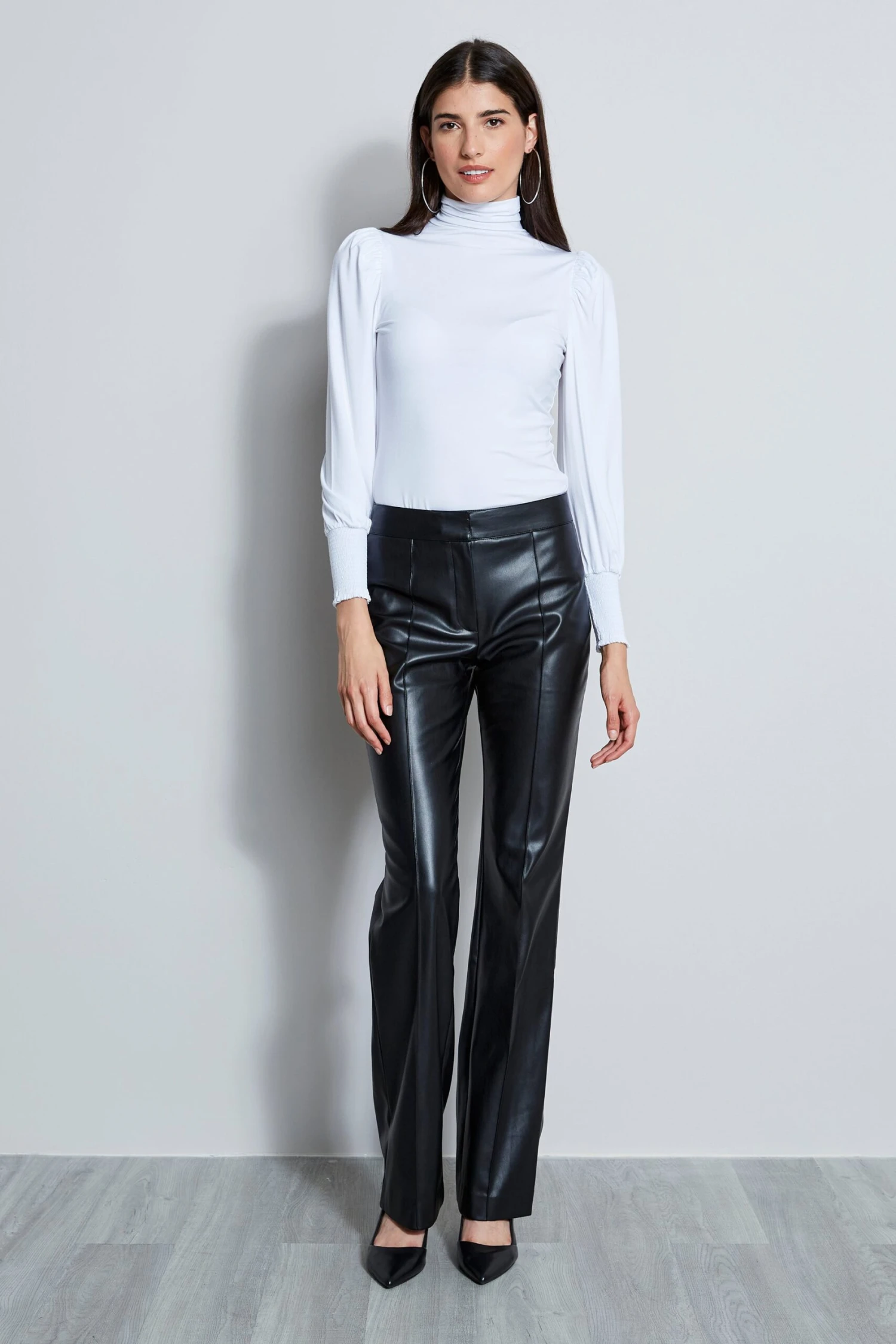 Refined and sophisticated, this Luxe Stretch Jersey Long Sleeve Turtle-Neck Knit features smocking at the cuff; lends a feminine twist to Fall’s essential Tee.