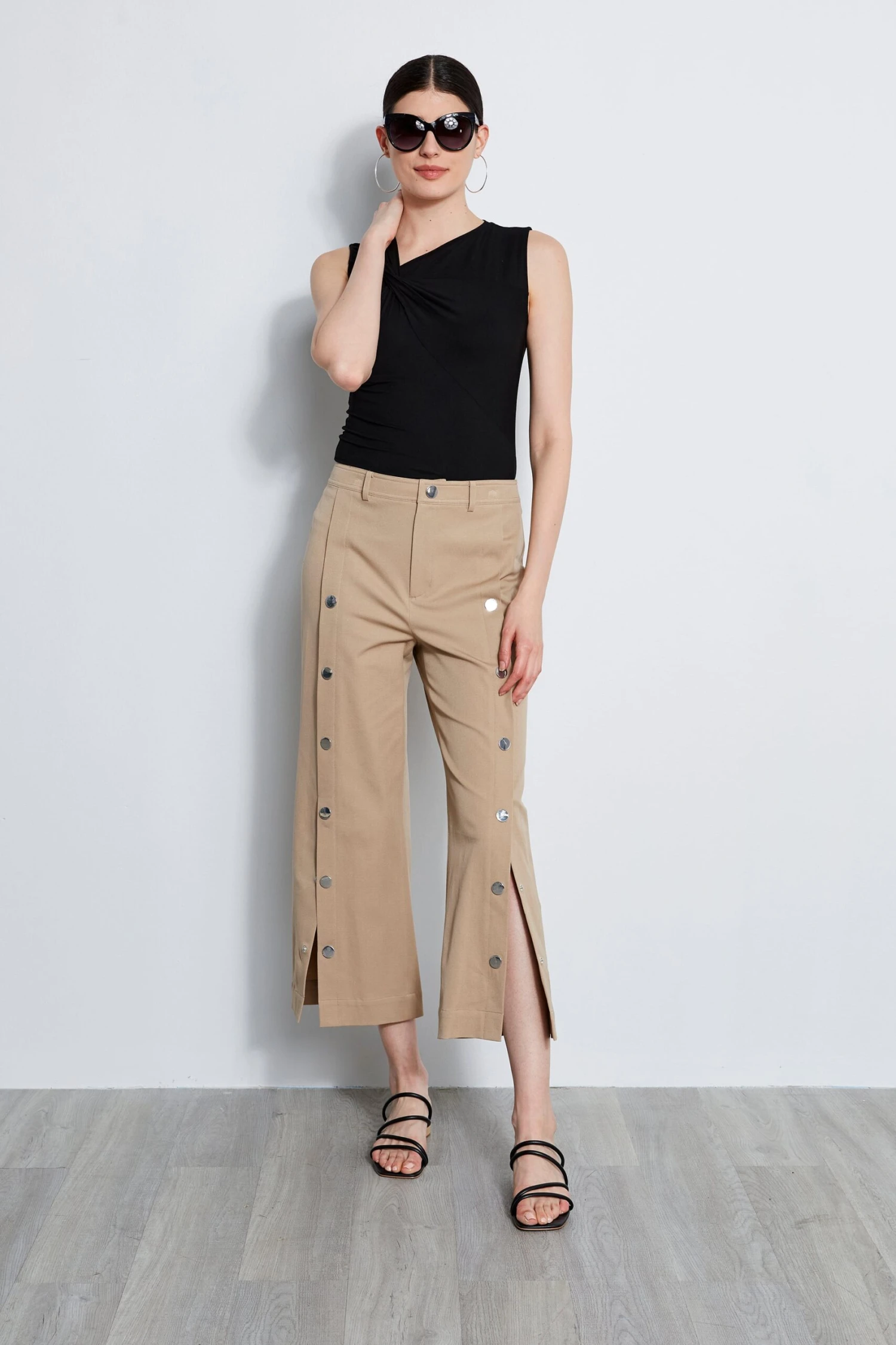 - Stretch Cotton Blend Wide Leg Side Snap Pants