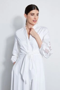 - Cotton Poplin Shift Dress With V-Neckline & Tie Detail
