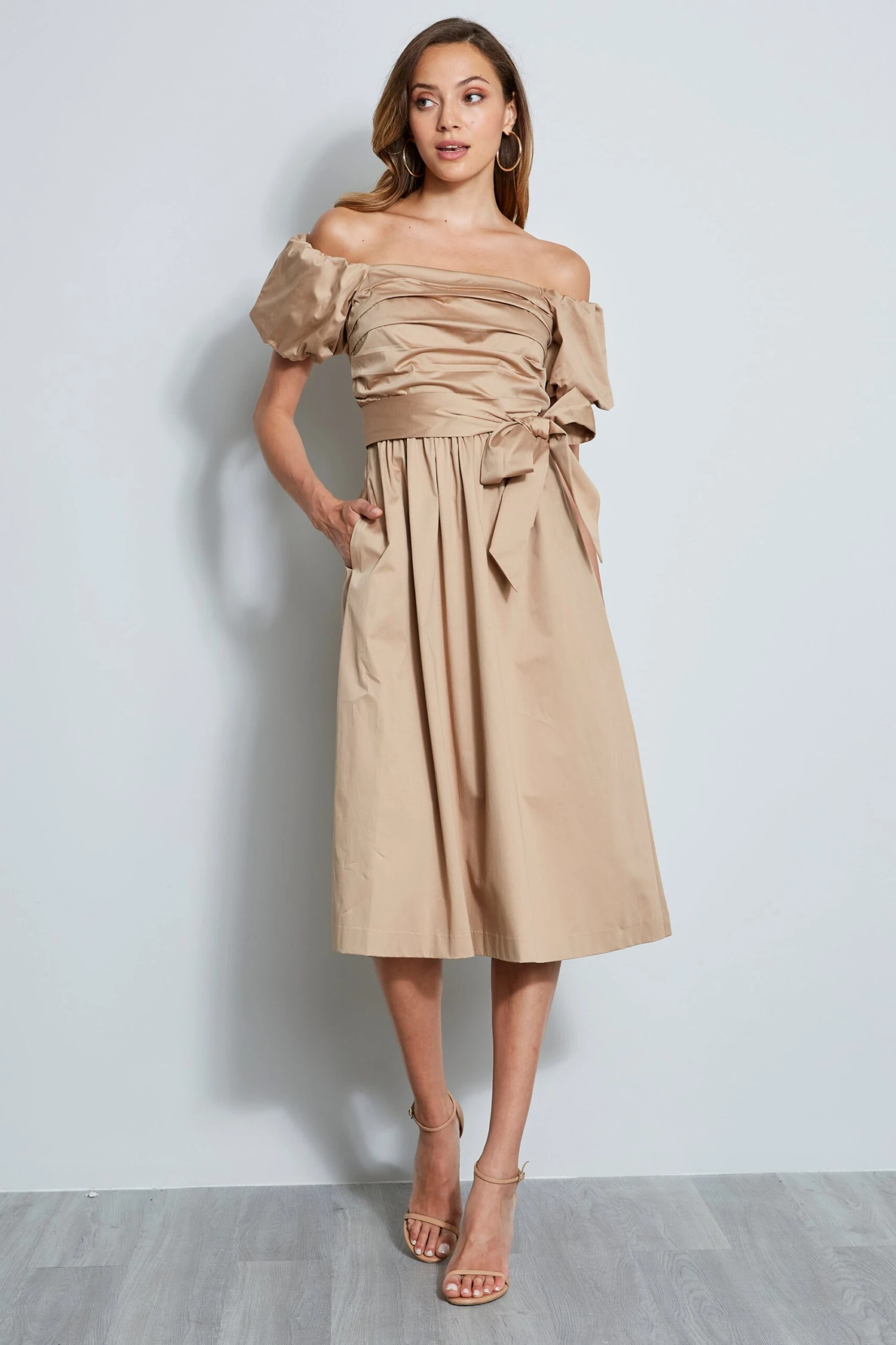 - Off the Shoulder Cotton Midi Dress with self sash