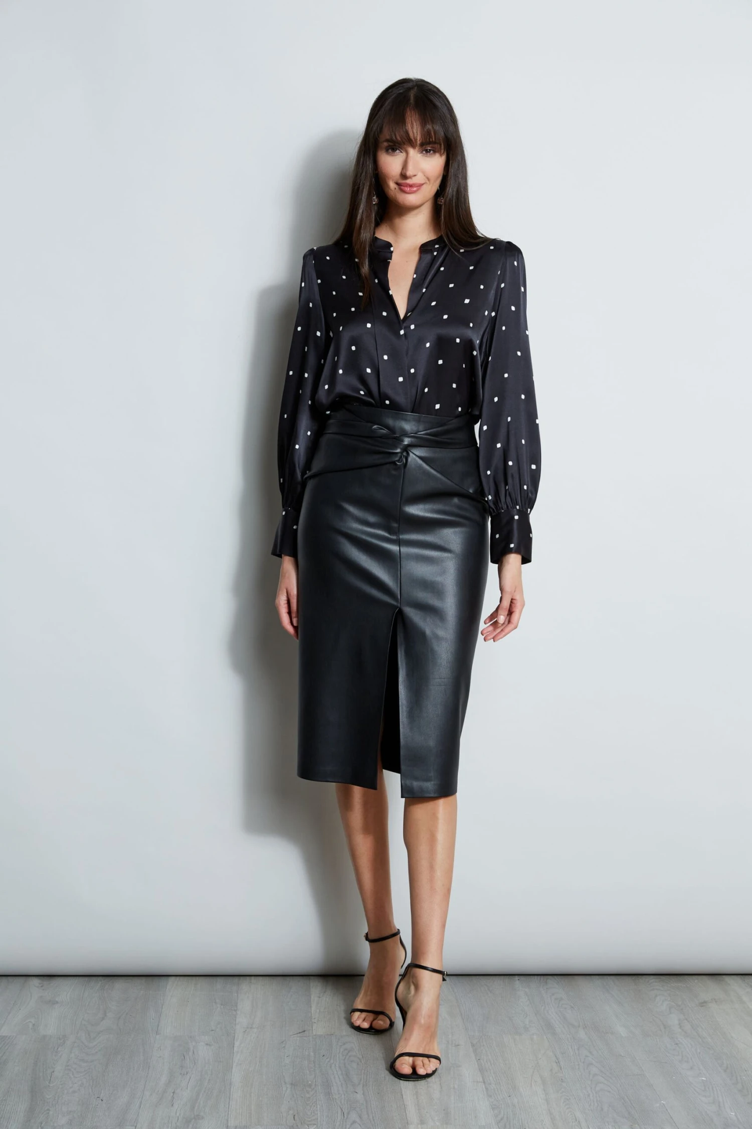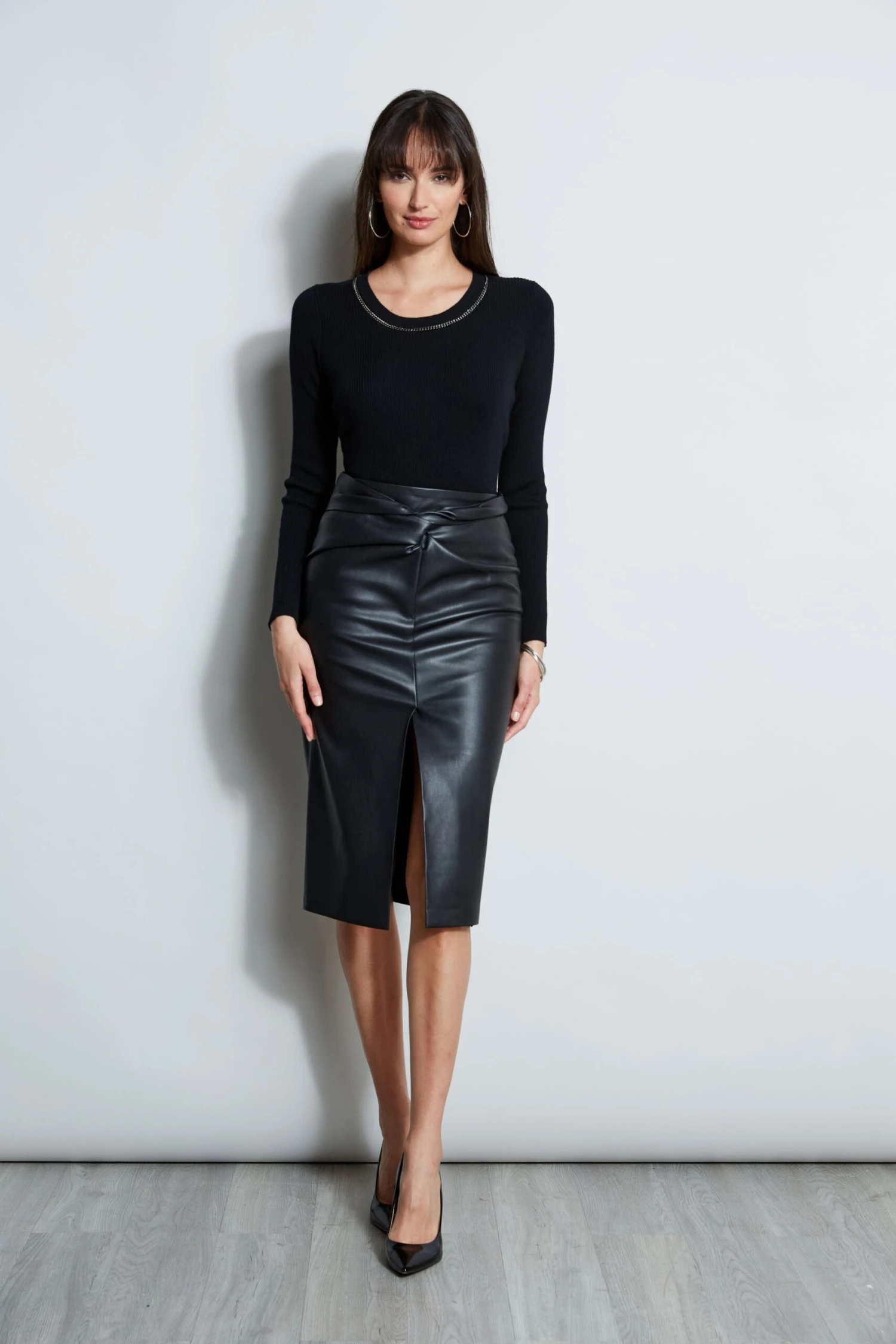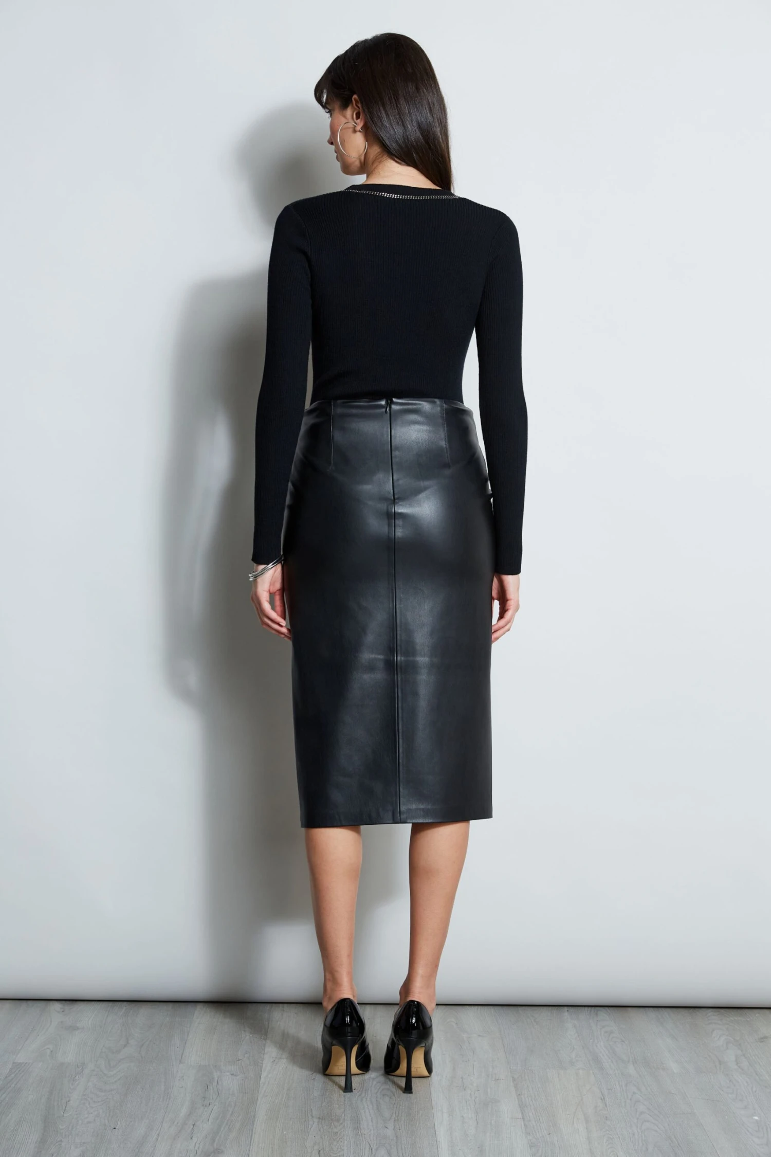 - Vegan Leather Twist Knot Midi Skirt with Front Slit