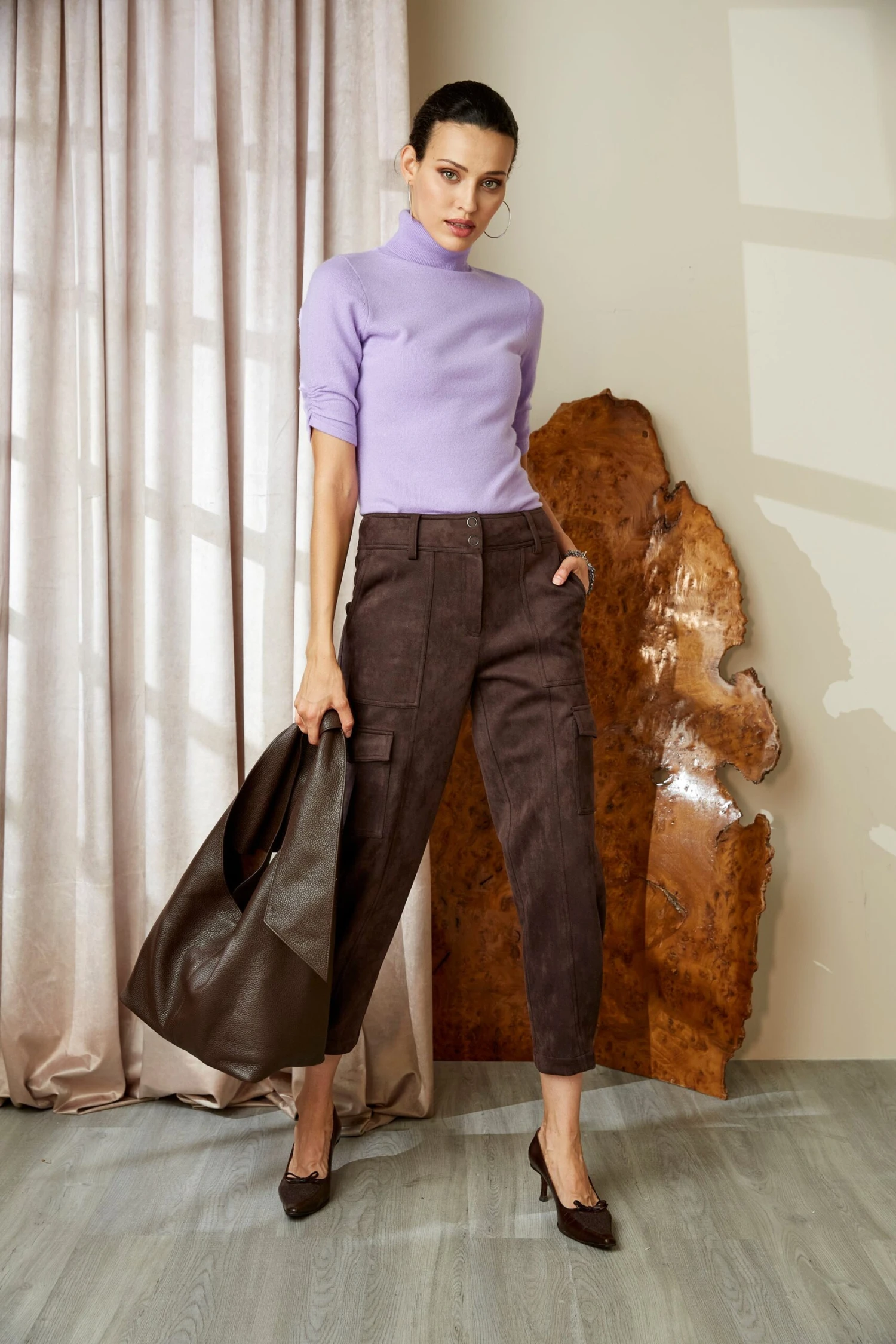 - Vegan Suede Utility Cargo Pants with side pockets & ankle detail