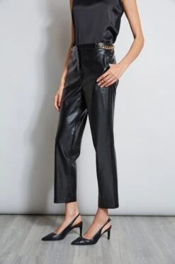 - Vegan Leather Straight Leg Pant with Side Chain Belt